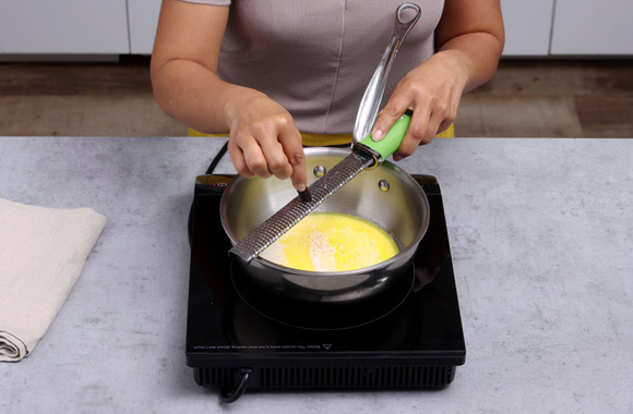 11Préparez la sauce en commençant par faire fondre le beurre dans une casserole à feu très doux. Puis ajoutez la crème et la fève tonka.