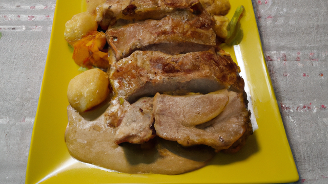 Un rôti de porc moelleux, qui a cuit dans la moutarde.