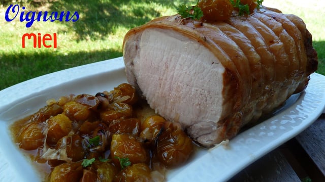 Faire cuire votre rôti dans le four TH 200°C, avec les oignons coupés finement, le vin blanc et le fond de veau préparé avec l'eau, saler et poivrer. Faire cuire 50 minutes.