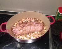 Roti de veau farci au foie gras cuit dans un vin blanc moelleux