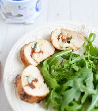 De délicieux roulés de poulet, farcis au Bresse Bleu et tomates séchées. Un vrai régal !Une recette réalisée par Valérie du blog 'Marcia' Tack'.