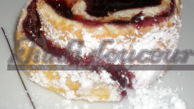 Étaler une fine couche de gelée de mûres (moi c'était de la fraise).