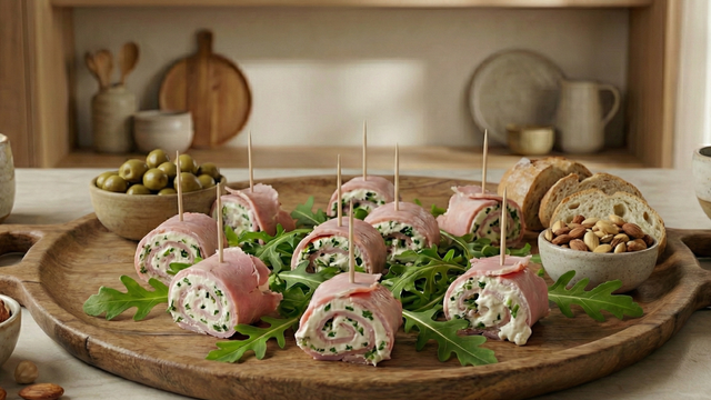 On peut agrémenter cette recette en mélangeant des pistaches grillées finement concassées avec le Boursin, avant de le tartiner sur les tranches de jambon.