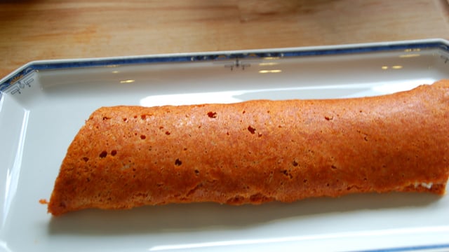 Gâteau roulé au paprika fourré de fromage, d'ail et de fines herbes.