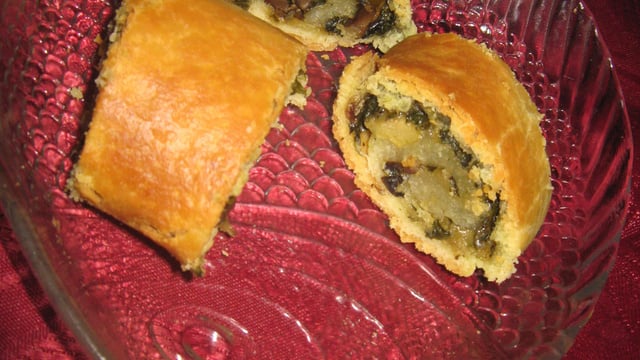 Petrir la pâte et étaler la farce, puis les fromages de votre choix et les olives coupées. Rouler, mettre dans votre plat allant au four. Cuire pendant 20mn.