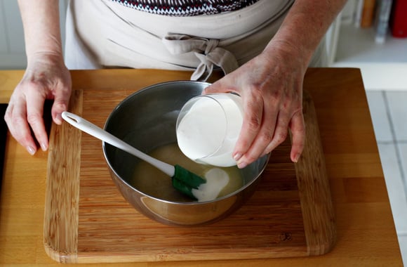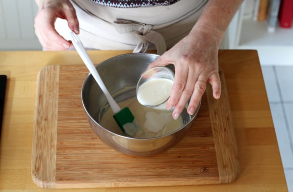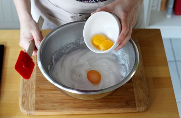 5Ajoutez les jaunes et mélangez délicatement avec une maryse.