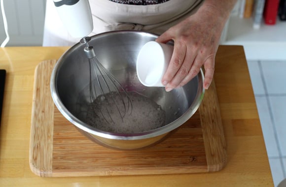 Battez les blancs en neige en ajoutant le sucre petit à petit quand les blancs commencent à mousser.