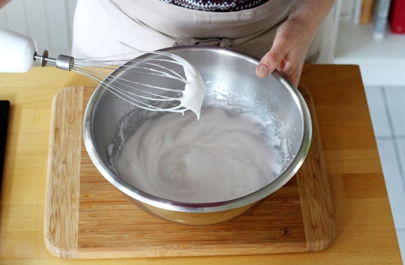 4Les blancs doivent avoir une texture de mousse à raser et ils doivent former comme un bec d'oiseau sur votre fouet.