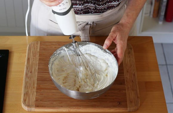 8Montez la ganache avec un fouet ou un batteur électrique en une chantilly un peu ferme.