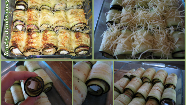 Pour le montage, mettez une tranche de jambon pour l'aubergine, préalablement salée et poivrée. A l'extrémité posé un bout de chèvre, et roulé le tout très serré. Mettez dans un plat, parsemez de gruyère, et hop au four a 190° pendant 20 minutes environ.