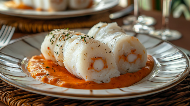 Enlevez le roulé de poisson du film, tranchez-le et servez-le nappé de sauce. Un régal !