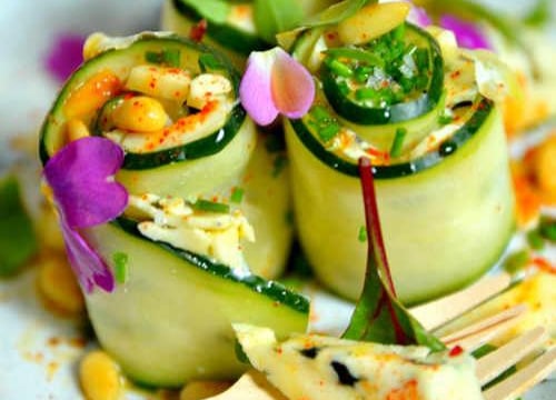 Roulez les concombres pour en faire de jolies bouchées.