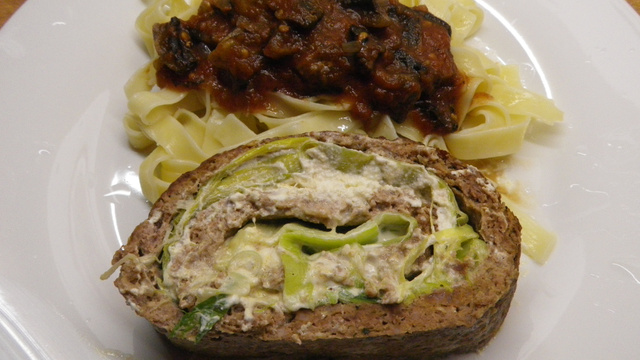 Retirer le film alimentaire du dessus et répartir les feuilles de poireau sur la préparation. - 5Mettre dans le bol le fromage frais, le lait, le sel et le poivre et mixer 5 secondes vitesse 4 puis enduire les feuilles de poireau de cette préparation.Rouler la viande hachée sur elle-même en s'aidant du film alimentaire (comme un escargot).