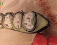 Rouleaux d'aubergines au roquefort.Aubergines grillées qui renferment en son coeur du rocquefort et autre saveur.