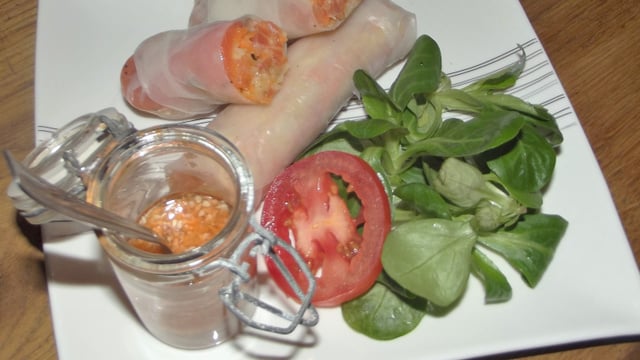 Vous pouvez déguster ces rouleaux de printemps, avec cette sauce nem, mais éventuellement nature. Tout ça accompagné d'une petite salade de roquette ou de mâche.