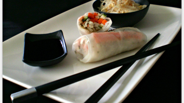Mélangez les ingrédients de la sauce et servir accompagné des rouleaux de printemps au surimi.