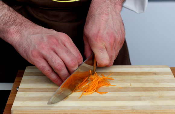 2Détaillez la carotte en julienne (très fins bâtonnets).