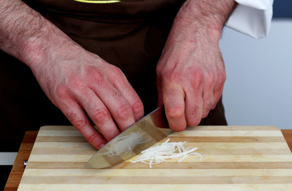 3Détaillez le radis en julienne (très fins bâtonnets).