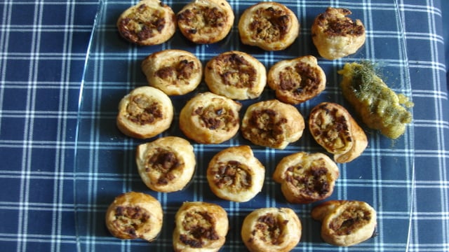 Roulés de pâte feuilletée au thon pour l'apéro.