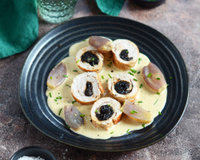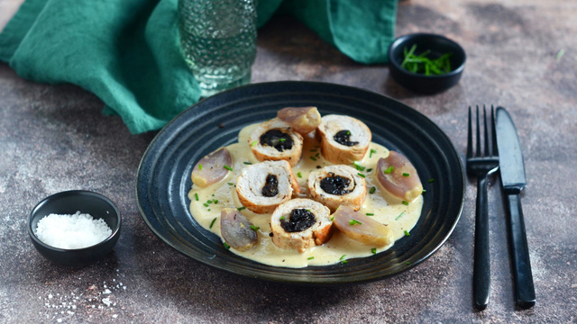 Un plat chic, simple, rapide et qui n'est pas coûteux ? C'est la recette d'aujourd'hui avec ces roulés de dinde farcis aux pruneaux puis coupés en rondelles et servis avec une sauce crémeuse et des échalotes confites.