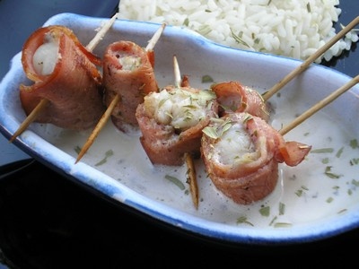 Roulez les morceaux de lotte des les tranches de bacon, assaisonnez-les.