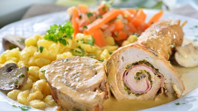 Mélangez le reste du Philadelphia avec le lait et ajoutez le jus de cuisson des roulades, ainsi qu'un peu de persil haché. Rectifiez l'assaisonnement et poursuivez la cuisson à feu doux pendant 5 minutes. Disposez les roulades dans les assiettes, ajoutez les carottes et le jus de cuisson. Servez immédiatement avec la farniture de votre choix.