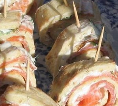 Mélanger le fromage frais et le yaourt, ajouter le reste d'aneth ciselée et le poivre blanc. Etaler ce mélange sur les galettes de pain polaire. Ajouter les tranches de saumon fumé et rouler serré.