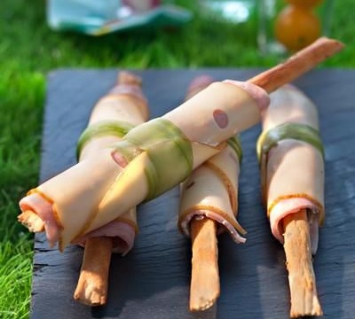 Etaler le St Môret et disposer un gressin au centre ainsi qu'une lamelle de concombre. Rouler l'ensemble comme un maki et laisser prendre au réfrigérateur pendant une heure environ.