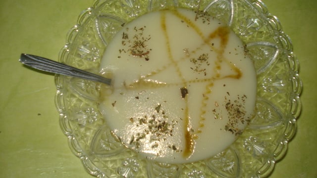 Lorsque le mélange devient un peu mou, versez dans des assiettes et garnissez avec du miel et du thym.