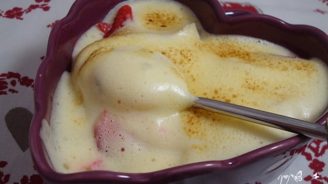 Napper ensuite le tout de sabayon et dorer le dessus quelques minutes au chalumeau. Déguster sans attendre.