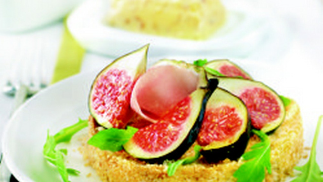 Si vous n'avez pas d'emporte-pièce, tassez le sablé dans des verrines. Si vous avez le temps, faites rôtir les figues dans 1 c. à soupe de St Hubert® 5 céréales avant de dresser et décorez de copeaux de parmesan.