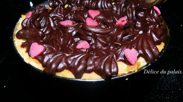 Faire cuire la pâte sablée à 200° pendant 20 min, laisser refroidir et verser la ganache au chocolat.