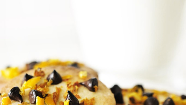 Préchauffer le four à 180 °C. Étaler la pâte sur environ 1/2 cm d'épaisseur et former des sablés à l'aide d'un emporte-pièce. Déposer des zestes d'oranges et des éclats de chocolat noir extra fin au fructose Vivis sur chaque sablé. Enfourner pour 20 min.