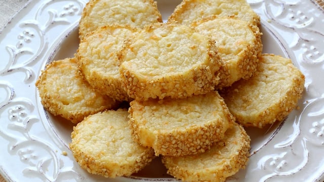 Sur une feuille de papier cuisson, badigeonnez les boudins avec le jaune d’œuf puis roulez-les dans les graines de sésame.