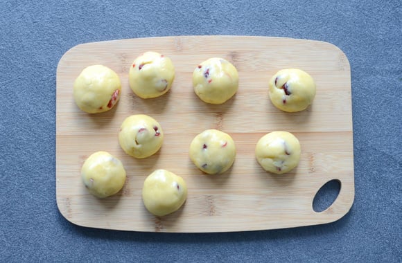 6Façonnez des boulettes de la grosseur d’une noix et déposez-les sur une plaque recouverte de papier sulfurisé.