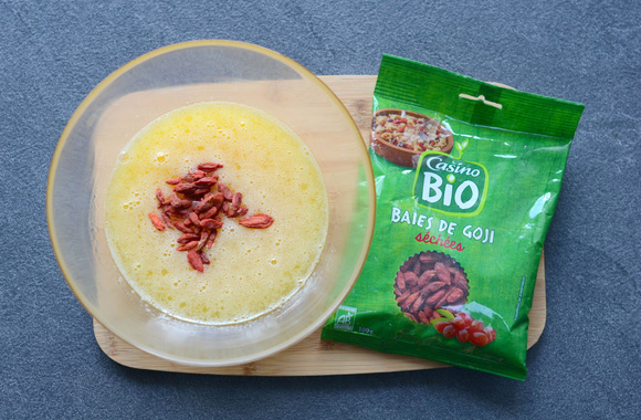 3Ajoutez les baies de goji séchées et mélangez.