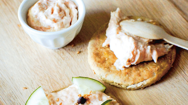 Tartiner les sablés de crème de crevette à l’amande.