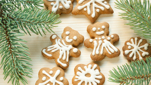 Des sablés en forme d'ours et d'étoiles avec un glaçage blanc comme neige.