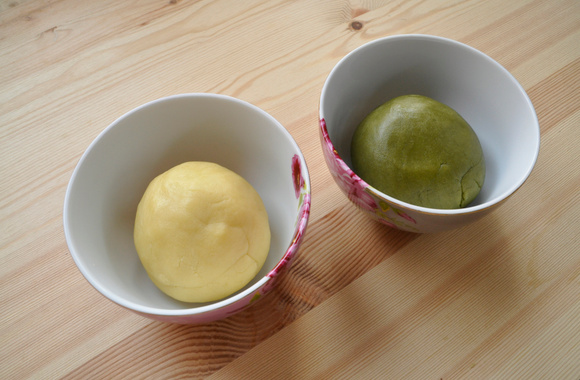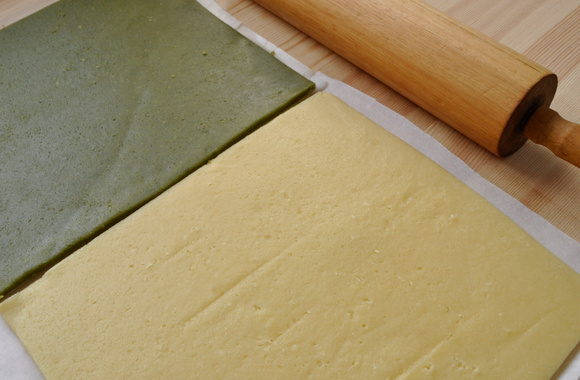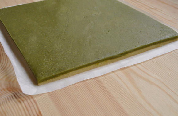 Préparez la pâte au matcha de la même manière mais en tamisant la farine avec le thé matcha en poudre.