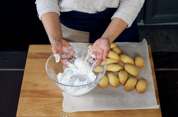 12Une fois cuits, laissez-les tiédir puis enrobez-les de sucre glace par petite quantité.