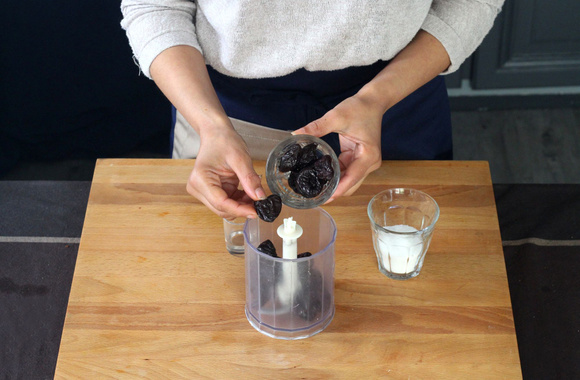 Mettez les pruneaux, le sucre et l'eau de fleur d'oranger dans un mixer et mixez, jusqu'à obtenir une pâte.