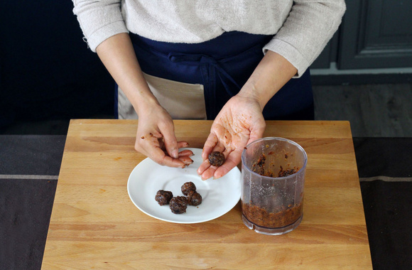 2Faites des boulettes de la taille d'une grosse olive avec la pâte de pruneaux puis réservez.