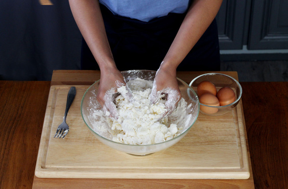 6Pétrissez rapidement, sans trop travailler la pâte qui, à la fin, doit être compacte et homogène.