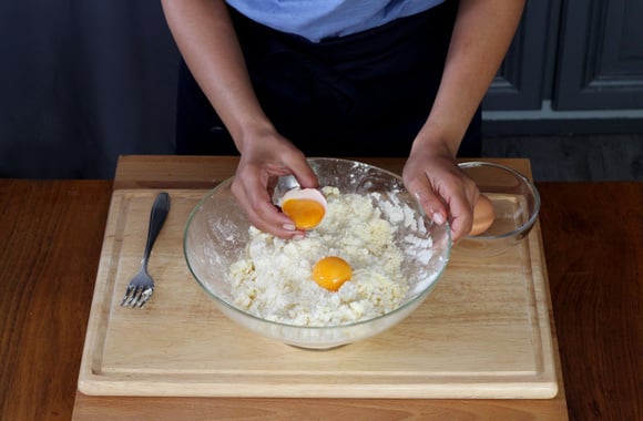 9Mélangez en pétrissant légèrement jusqu'à obtenir une pâte homogène.