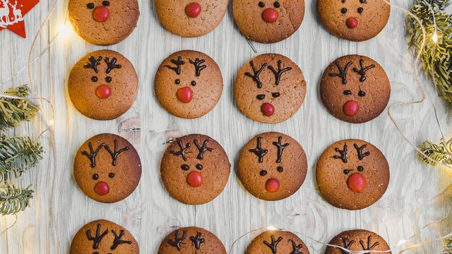 Une fois refroidis, décorez. Faites fondre le chocolat au -bain-marie et réalisez les bois des rennes, collez le nez avec une pointe de chocolat.