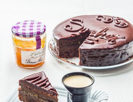 Un gâteau au chocolat moelleux, une belle couche de confiture d'abricots fruitée et un glaçage riche en chocolat : vous allez fondre pour la Sacher Torte !