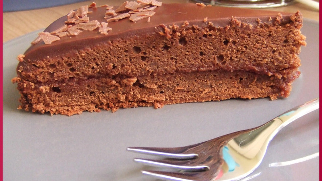 Gâteau moelleux au chocolat fourré à la confiture.