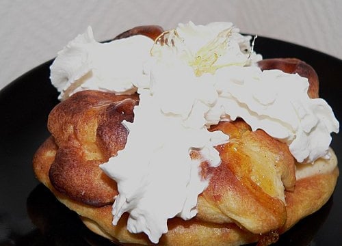 - 8La chantillyMontez votre chantilly au dernier moment avec une crème et un saladier bien froid. Avec une poche à douille à embout cannelé, décorez vos Saint Honoré de quelques pointes. Placez vos décors en caramel si vous en avez réalisé.
