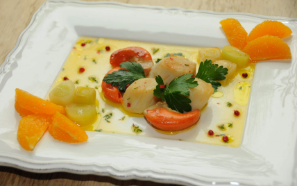 Les Saint-Jacques à la compotée de poireaux sont toujours un régal. Les saveurs s'équilibrent à merveille. Idem avec les agrumes, qui sont les alliés des deux premiers.