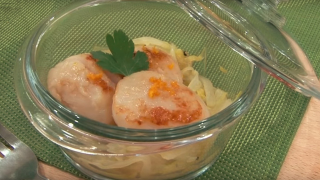 Déposez un peu de fondue d'endive dans le fond des ramequins, ajoutez 3 saint-jacques par ramequins, couvrez et faites cuire au four à 190°C pendant 3 à 5 minutes.